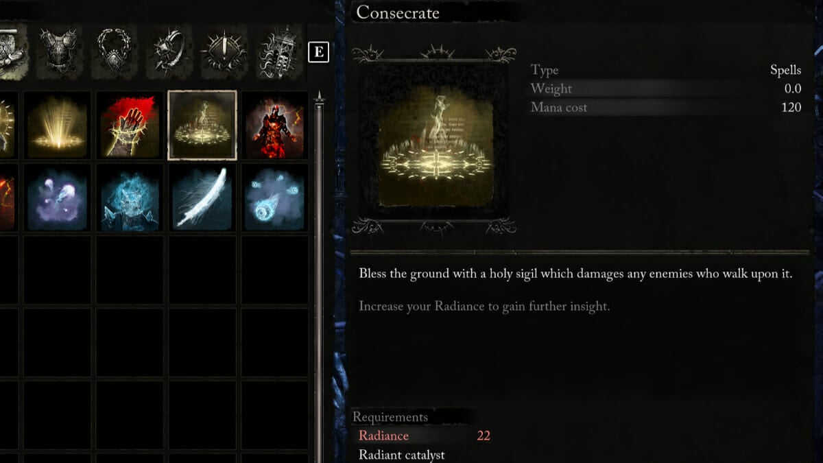 There are a number of great AoE spells in Lords of the Fallen, but Consecrate is arguably the best. Consecrate blesses the ground itself, damaging any enemies who tread upon its holy sigil. That makes it ideal for area control. With this spell, you can bait mobs into killing themselves or deal serious damage to bosses. In PvP, you can even zone out your opponents, forcing them into losing positions. You’ll need 22 Radiance to use this spell, but that’s nothing compared to the 120 Mana you need to cast it. It’s a punishing cost but well worth it in the right hands. Though some players will prefer more spammable spells, Consecrate is as devastating as it is costly.