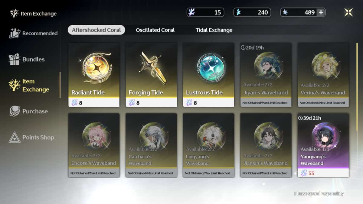 Save your currency for new characters or duplicates of a party member you want to upgrade. Usually, many in-game stores tend to rotate, and currency such as Coral is useful for unlocking other characters or certain rare items to build the ones you currently own.