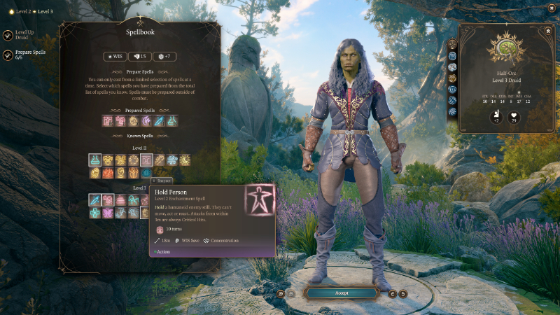 Considering how vital movement is in Baldur’s Gate 3, it’s no surprise that trapping an enemy in place is a formidable power. Hold Person does just that, and as a Level 2 Enchantment, the player has access to it for most of the game. Creatures struck by this power cannot move, act, or react. Additionally, all attacks within 1m are Critical Hits against them. That combo makes it easy to set a foe up for combo attacks. Just hold them in place and then let your Rogue or Barbarian ruin their day. No wonder this is one of the best Druid spells.