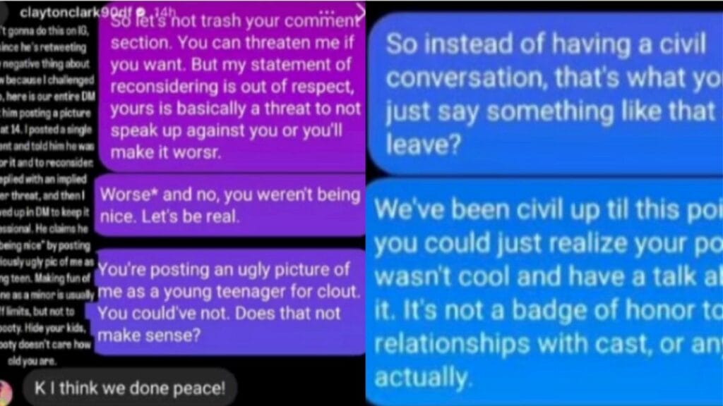 Clayton Clark claims the 90 Day Fiance star tried to reason with the fan who posted a triggering photo of the reality star. The picture was of 14-year-old Clayton when he felt insecure and awkward. The photo upset Clayton, who asked the poster to remove the image. Clayton lost his temper when the fan denied his requests and began to rage.