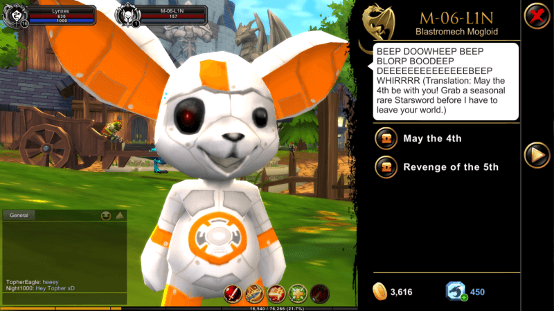Artix Entertainment is known to include pop culture icons in their comedic fantasy RPG’s and Star Wars is no exception to this rule as an in-game store dedicated to May the 4th is now open in the beginning town in Adventure Quest 3D, Battleon.