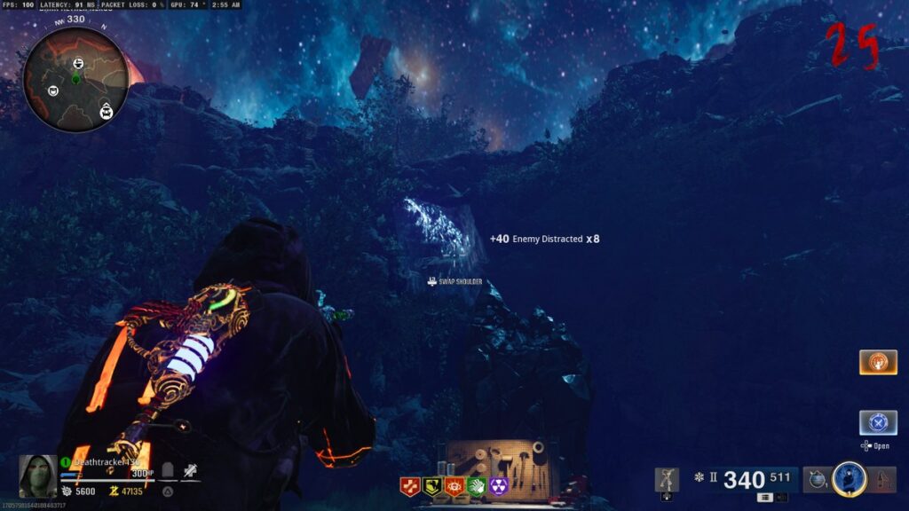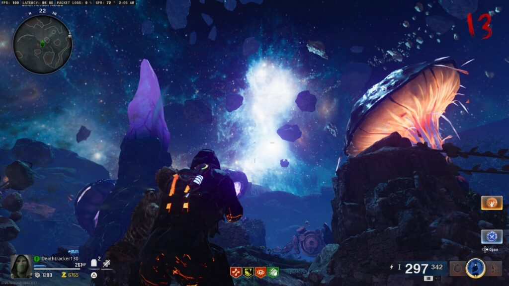This action will spawn 5 more rocks that orbit the middle area of the map, and all you have to do is shoot them all as quickly as possible. An audio cue will guide you toward succession in this Black Ops 6 Zombies side easter egg, and once you’ve done the task, an Aether Crystal will drop alongside the Cryo Freeze ammo mod for your weapon.