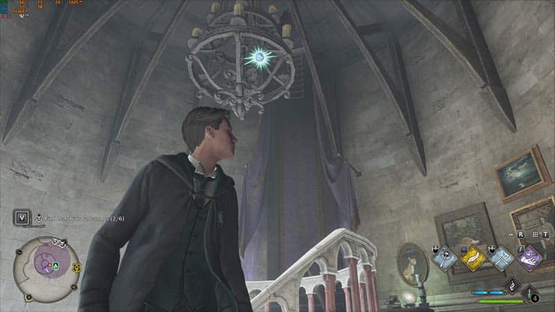 The second Gobstone can be found inside the Divination Classroom. Once you’re there, be sure to keep your eyes up, as it’s sitting on the top of a chandelier. Using Accio, collect the Gobstone.