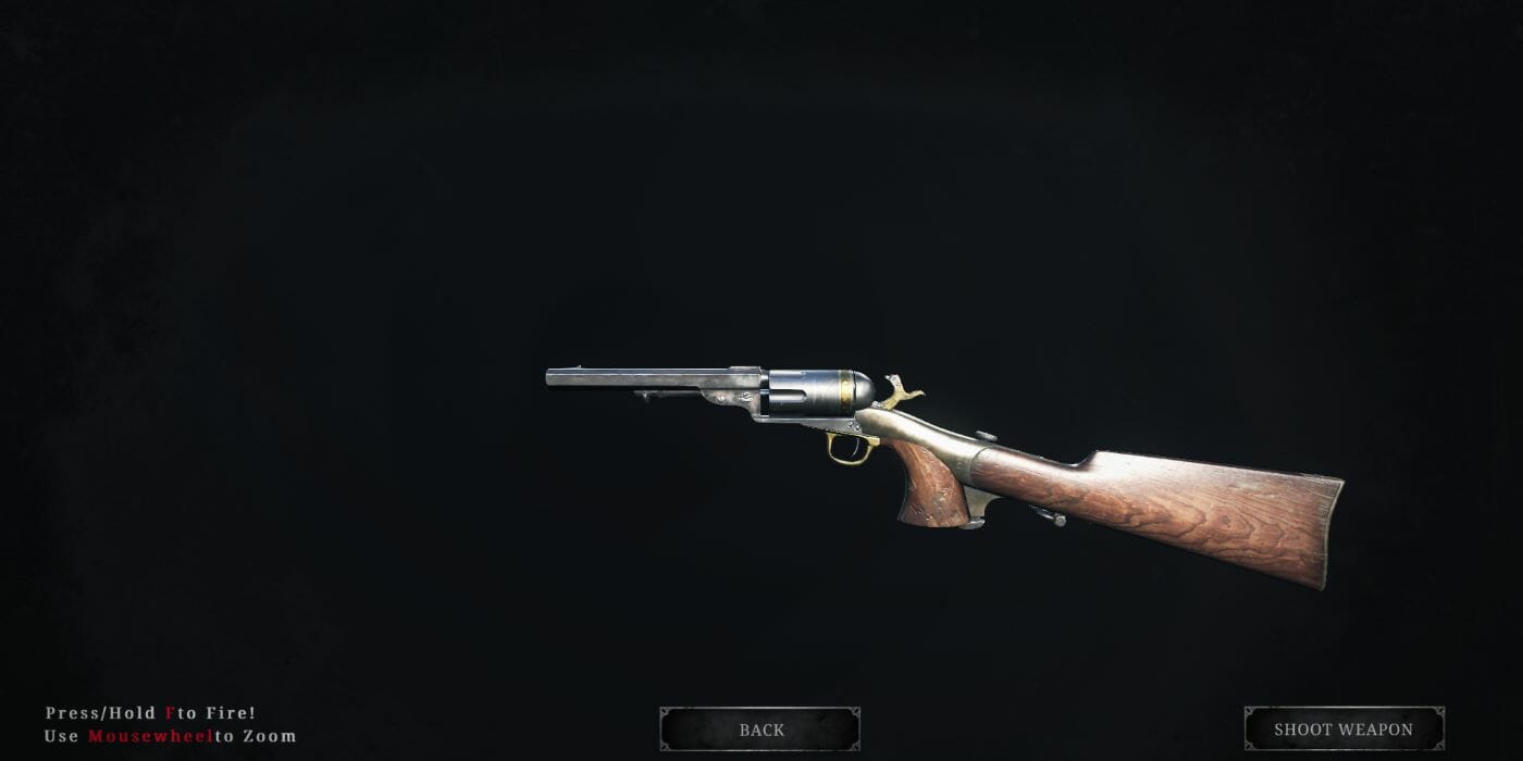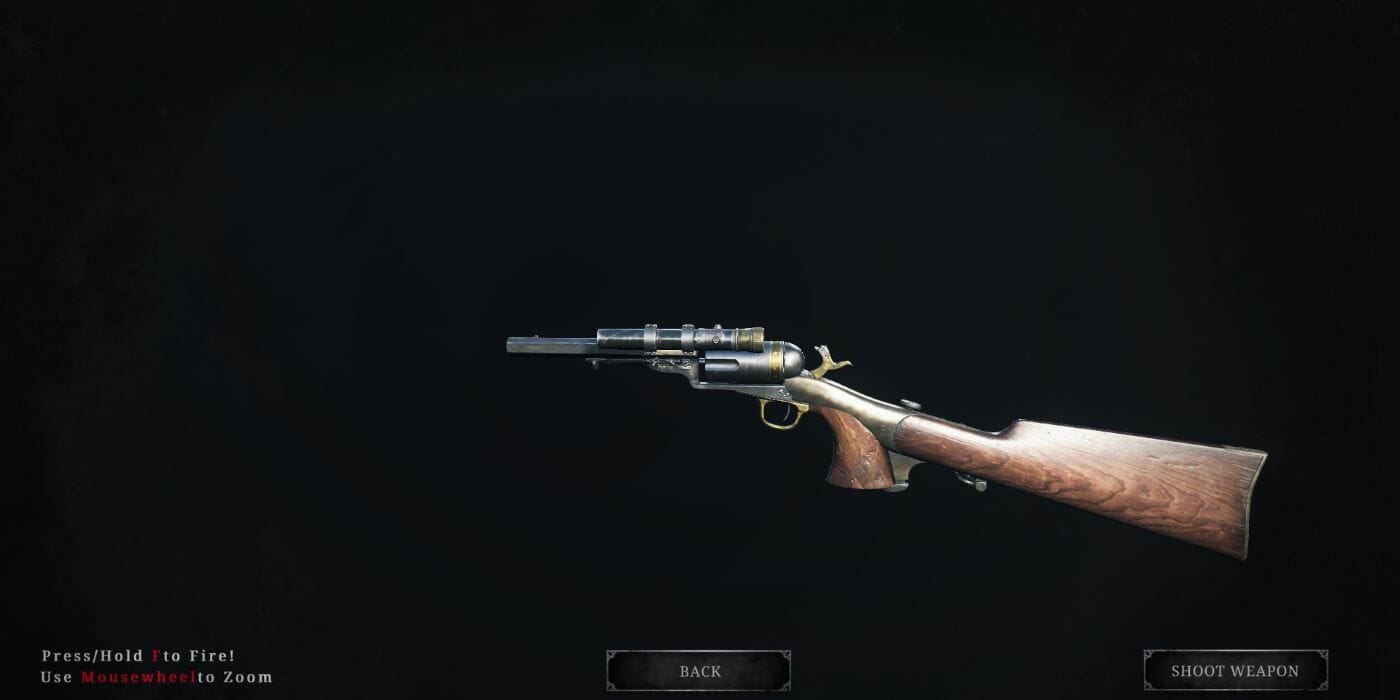 There isn’t much to say about the Springfield Bayonet. The weapon is a Hunt: Showdown staple and would rank higher on this list if there weren’t so many other guns in this event. The firearm is a copy-paste of the standard Springfield, with an added blade to provide more utility. However, the Springfield is now more viable than ever now that it has high velocity bullets.