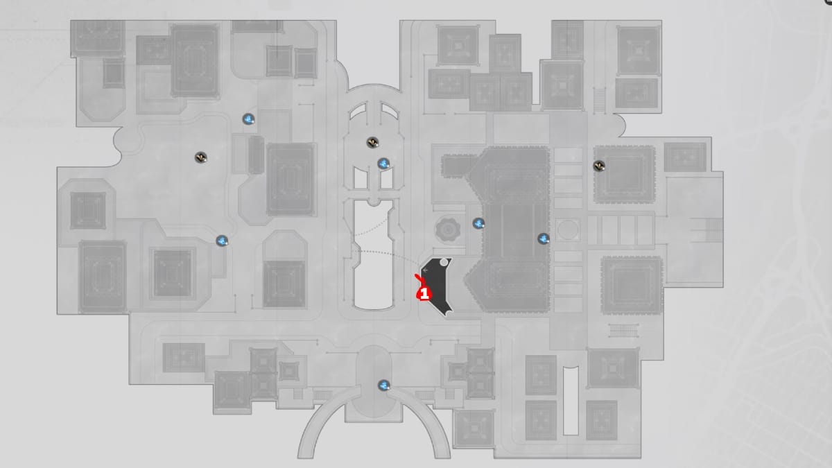 - Go up the left side of the statue; there will be a strange decoration on the staircase handrail.