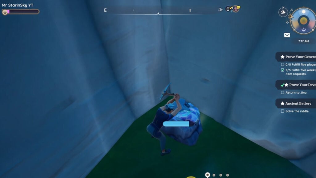 This is the best Palium Ore farming location in Palia. You can relog the game to respawn Paliums. When you don’t restart your game, you may have to wait an hour of real-life time for them to spawn. Note that you’ll need a Standard Ax and be level 6 mining to mine the Paliums.