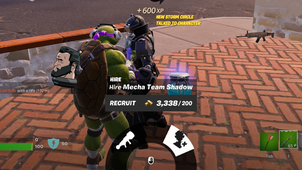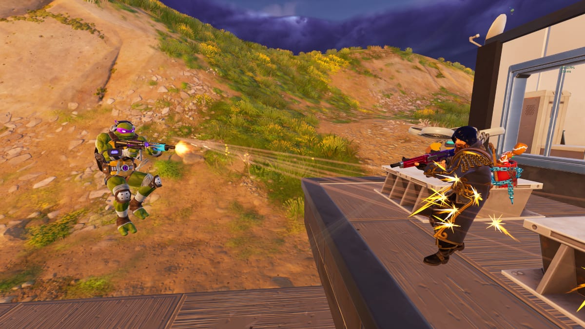 Killing any enemy within 10 meters will complete this “Eliminate Opponents From Within 10 Meters” Fortnite TMNT Quest.