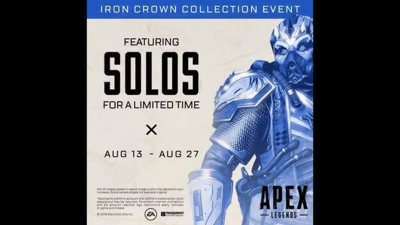 Apex Legends brings a limited-time event for players in the month of August. Starting today, August 13 to August 27, Apex Legends brings the Iron Crown Collection Event. The Iron Crown Event brings a new solo playable mode, a new look to Octane Town, double XP, and more skins.