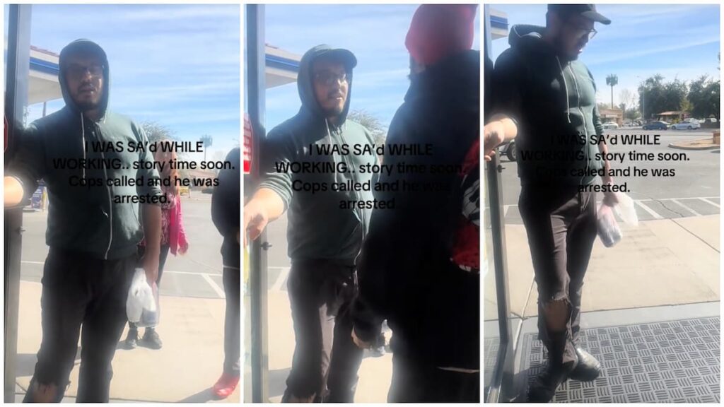 An Arizona man was arrested yesterday for sexually assaulting a worker at an AM/PM convenience store. While the incident was not caught on camera, the fallout from the inappropriate behavior was recorded, and the victim — Sandy Valenti — has shared the video on TikTok where it has since gone viral. In the footage, local residents and employees of the store are not only shocked by the actions of the perpetrator, but they also banded together in solidarity to stand up and confront him as well.