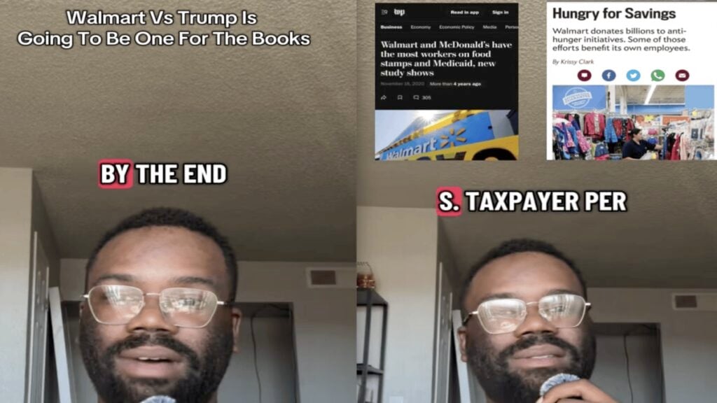Dahmmy (@nsddahmmy) posted a video titled, “Walmart vs. Trump is going to be one for the books.” He says that, by the end of the Trump administration, we’ll either “have Walmart or Trump” but “not both.” He also states that Walmart relies heavily on people who receive SNAP benefits across all states in the U.S. Walmart actually “captures one out of four dollars in the SNAP budget,” according to Dahmmy. Other data shows that “94% of recipients shop at Walmart.” Without recipients receiving their benefits, how will a company like Walmart continue to thrive?