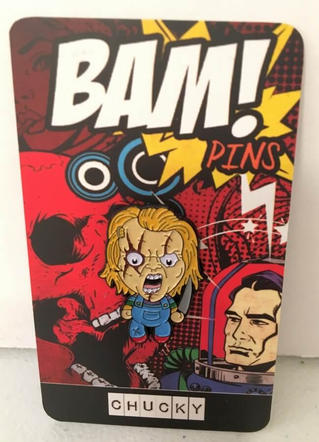 Chucky is the theme of the BAM! pin for the October Box. Of course, this is from another of those “scary” movies, Child’s Play and all the additional movies in that series. I guess I am just still trying to figure out how a doll could do so much damage! Was he really that strong? I hope to never find out!