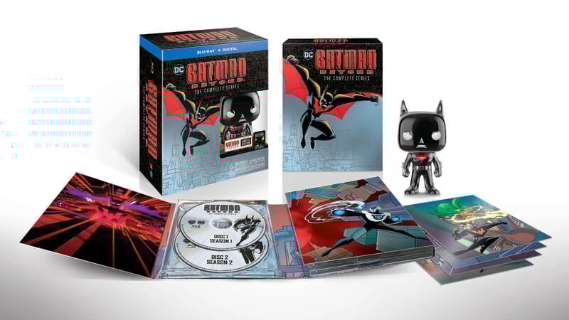 Now, it will be making a comeback. No, not with an actual return to the airwaves or a fourth season reboot, but with a Blu-ray remastering. Last Thursday during the show’s San Diego Comic-Con panel, a Blu-ray box set for Batman Beyond: The Complete Series – Limited Edition will arrive onto the DVD shelves in October from Warner Bros. Home Entertainment to celebrate the show’s 20th anniversary. Cracking in at 1,500 minutes of pure entertainment, the box set will feature all 52 episodes (four of which come with audio commentaries with co-creator Bruce Timm and other crew members) of the series across four discs, the uncut version of the movie Batman Beyond: Return of The Joker, and two bonus discs highlighted by 15 behind the scenes featurettes. And to top it all off like a cherry on top, the entire collection comes with a collectible chrome FUNKO Pop!