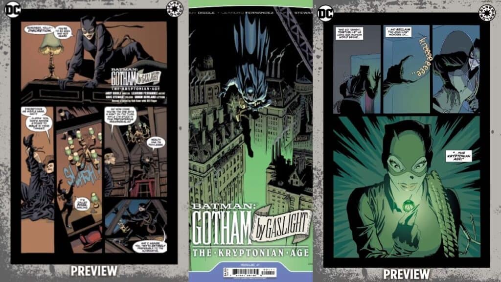 We do know that Batman: Gotham by Gaslight – The Kryptonian Age is set to bring a new iteration of the Justice League. Perhaps Catwoman’s thievery is the catalyst that brings part of this new team together. Meanwhile, over the twelve issues of the series, Andy Diggle and Leandro Fernandez will expand on this world originally from Brian Augustyn and Mike Mingola. This includes bringing DC’s greatest together for the 19th-century Justice League. Meanwhile, this leads to the reveal of their world’s secret Kryptonian Age.