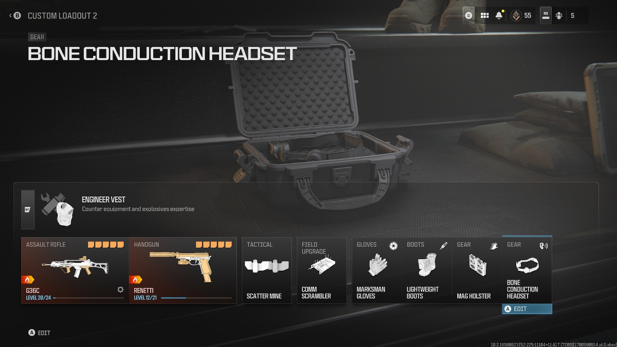 Now, by choosing the Engineer vest, you won’t have lethal equipment with you. You’re allowed to have two Scatter Mines instead, and the fourth gear option will unlock in the menu. Speaking of the gear, the Marksman Glove is the best option for steady shots if you like to farm kills in objective-based game modes like domination.