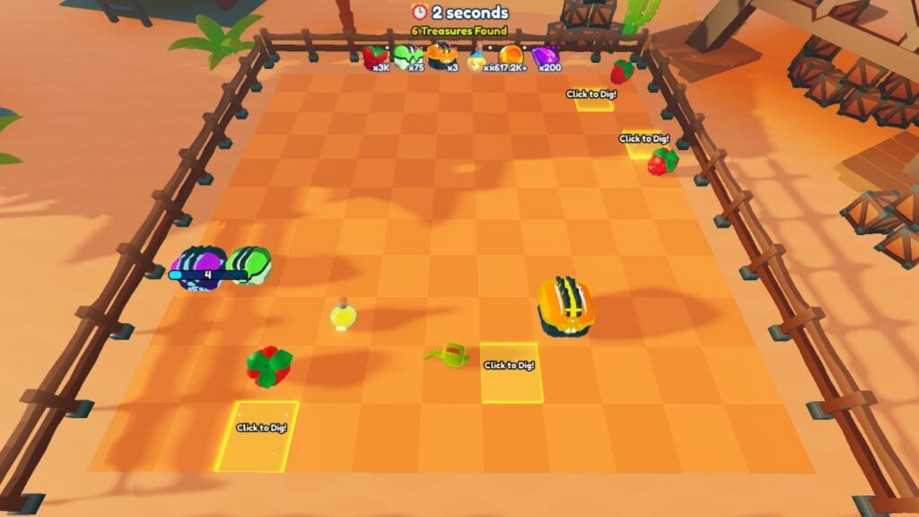 Each stage of this Dusty Dunes mini-game is short, and you can get coins, diamonds, and other treasures like eggs. In Ancient Dig, you must uncover treasures all over the board, but only in the glowing spaces. Dig deep enough for the next space to appear.