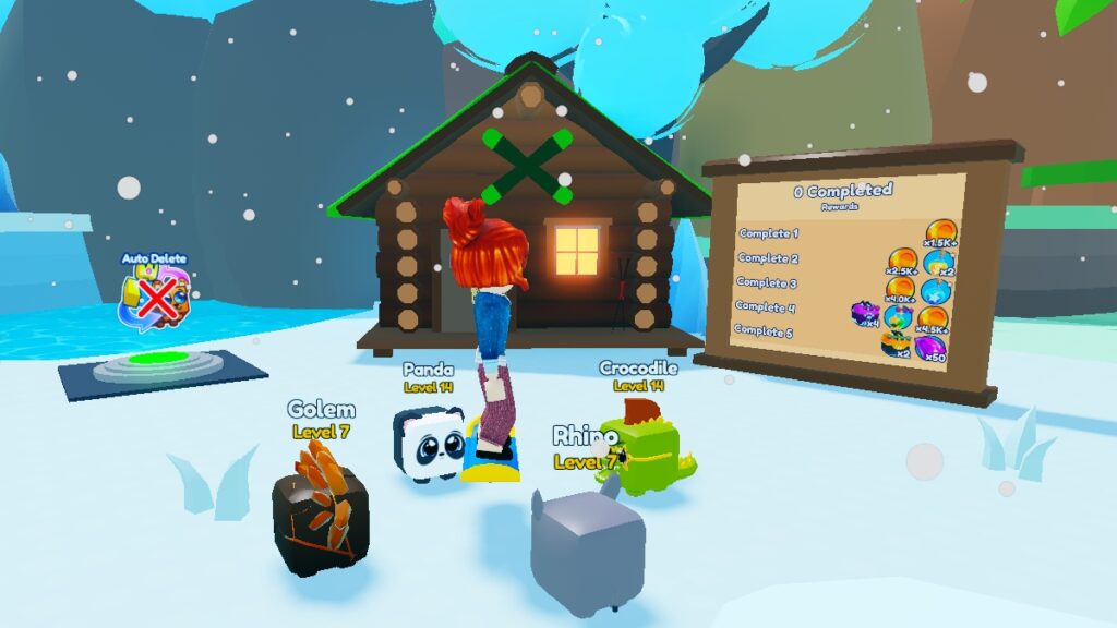 At the end of the Frosty Peaks area is Bruh, who offers various quest rewards. First, you must find the Skii Pass to get to this NPC. Once you reach his Hut, you will see that Bruh’s quests are straightforward. Bruh has a very extensive bounty table; you can earn diamonds, coins, and other rewards in exchange for completing them.