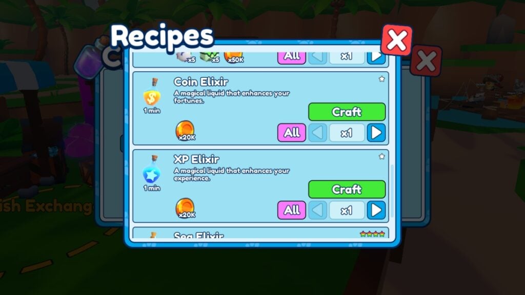 You can craft this potion once you complete the Blacksmith quest and learn how to craft it in his forge. The blacksmith is in Auburn Woods. After completing this challenge, you will unlock the crafting button on your screen. It is better to have the Coin effect and Exp Elixir active. As your pets gain coins, their level will increase to make the fights faster.Â
