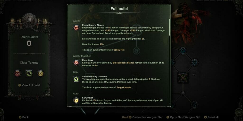 As mentioned earlier, the best build for the Veteran in Warhammer 40K Darktide must increase range attack capabilities, and this build supports the purpose. However, this might vary with your preferred playstyle, and it is up to you to decide the best build. Since the game allows you to try different builds without cost, there is always a chance for experiments.