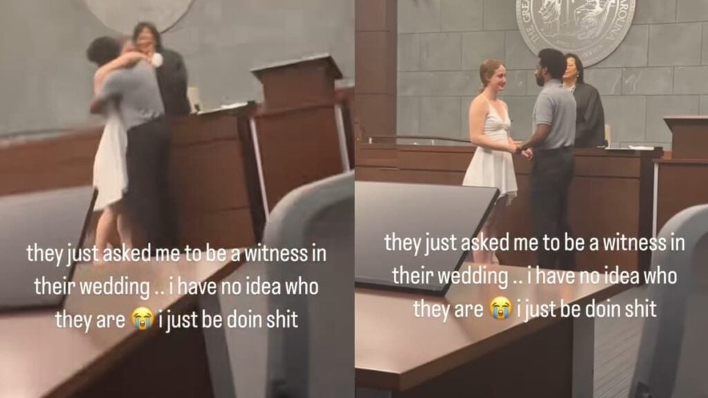 In the video shared by the North Carolina woman, she is filming the couple as they are getting married. You can see them holding hands and everything. When “you may kiss the bride” is said, the North Carolina woman starts cheering loudly as if she had known them her entire life. She wrote on top of the video, “they just asked me to be a witness in their wedding.. I have no idea who they are. I just be doin s**t.” She also wrote in the caption, “good deed for the day I guess.” Many agreed with her that it was, in fact, a good deed even if she was not taking things seriously.