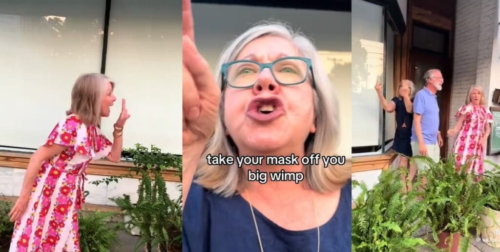 Despite the uproar, the protestors maintained composure, but not without enduring the insults. According to one user, “Calling them cowards while doing everything aggressive they can to incite a retaliation… classic Karen move.” Another quipped, “These old people with bones made of coral taking swings at young people is crazy. Woman, STAIRS can kill you.”