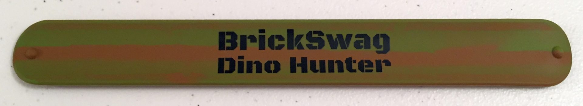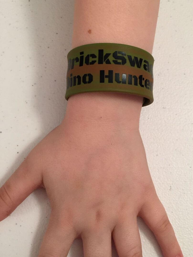 It’s a little crazy that they still make slap bracelets but they do! This is the BrickSwag Dino Hunter Slap Bracelet, modeled by our 7-year old who has decided he will keep it.