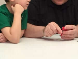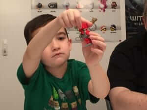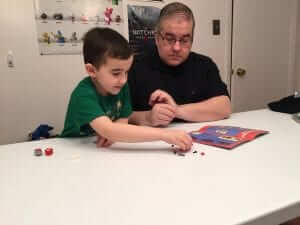 Each box usually has some type of theme and the October box’s theme was robots.  You can find an unboxing  video by Jeremy and Brayden on The Nerd Stash’s YouTube channel.  Here are a few pictures of them building the minifigure in this box…check it out to see the end result:
