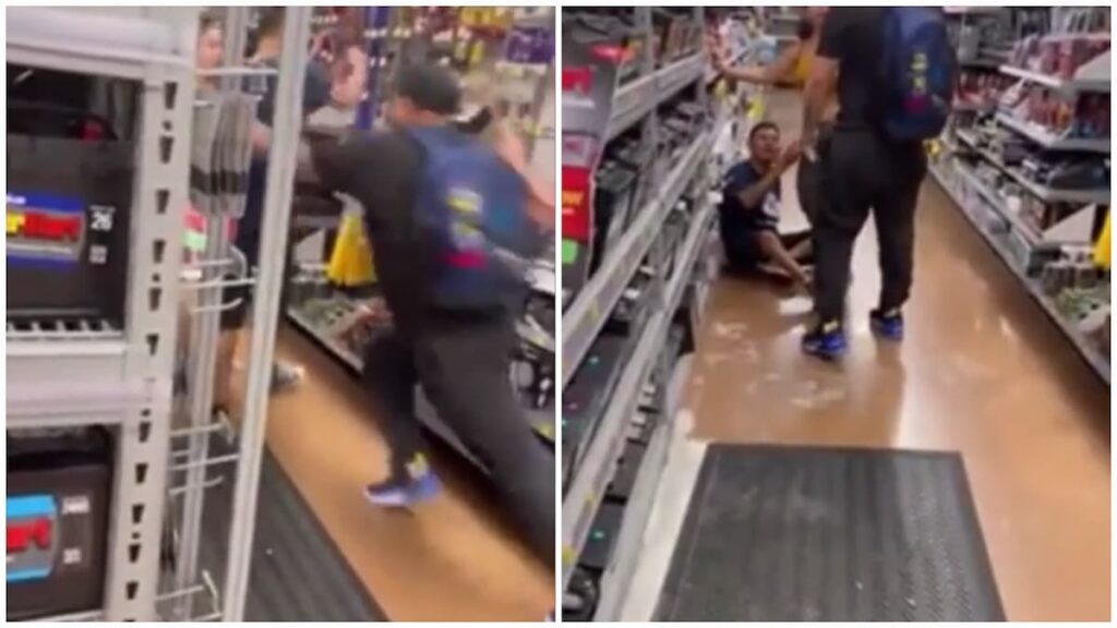 The 29-second clip begins in an Auto Care retail store aisle, and things kick off almost instantly. The prankster on the right is dressed in black, while the couple on the left are donned in blue and yellow. It appears like the YouTuber is trying to show the couple a tub of peanuts in his hand, though it’s hard to discern what is being said.