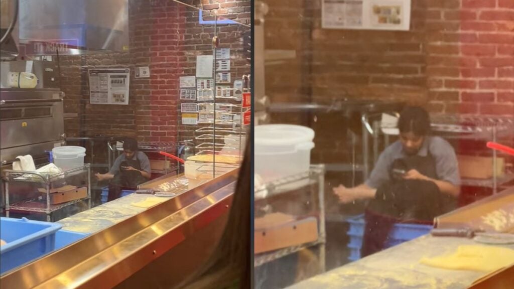 The video, posted by @bycarolinecase, shows a Domino’s employee sitting behind the display case. While this isn’t all that unusual, that changes once the camera pans in. The employee is seen sitting down, phone-scrolling, and rubbing their feet. Unfortunately, they also decided to take off their shoes, adding another level of discomfort for customers walking in.