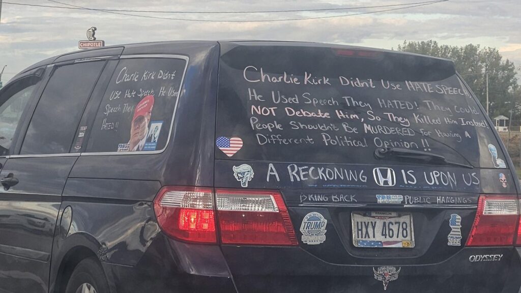 Columbus Driver Turns Car Into ‘Vanifesto’ Declaring ‘Bring Back Public Hangings’ Over Charlie Kirk’s Death ‘Give This Nutball Lots of Space on the Freeway’