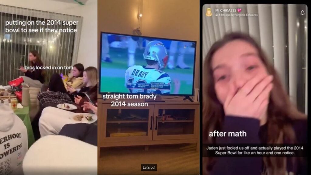 According to the viral video, the host invited some friends, set out a snack table, kept the drinks coming, and set the mood for a regular Super Bowl night. Instead of streaming the current game, they secretly put on the 2014 Super Bowl just to see what would happen.