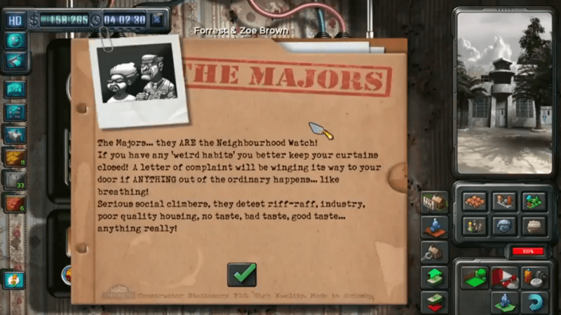 Alongside building homes and businesses, the player must navigate the tangled web of Undesirables looking to extort the business before it reaches success. To combat this motley crew of reprobates it’s necessaryย to become just as bad as them. Murder, arson, extortion, and sabotage are just the short list of tools to take advantage of in Constructor in order to earn power.