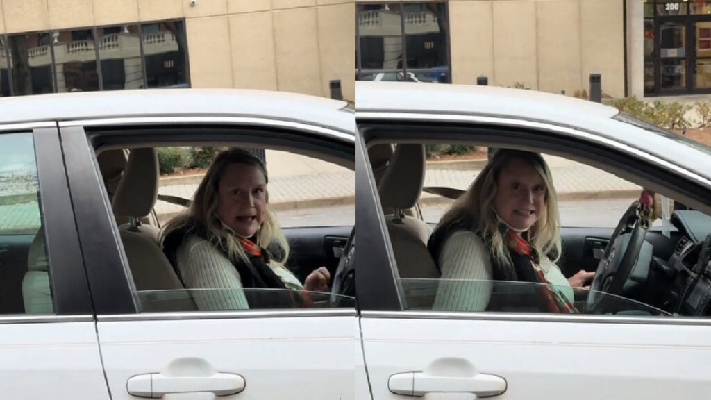 At first, the TikToker and her husband are completely dumbfounded, but then the Karen shows her true intentions. She immediately berates them, saying, “You’re a stupid [expletive] and you’re going to sit there with your flashers on!” in that same sickly-sweet drawl.