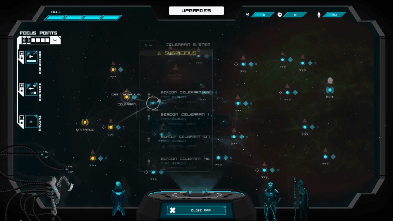 Itinerary choices on a stars map, which is procedurally-generated at each run.