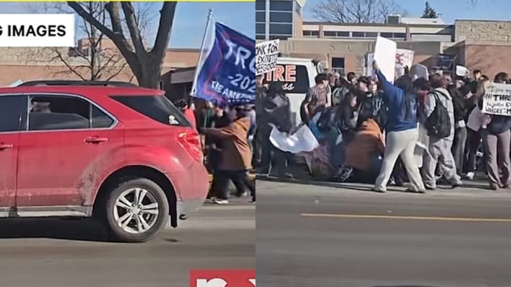 Many Trump supporters do not have positive views of anti-ICE protesters, believing the cause itself is wrong. While expressing disagreement is protected by freedom of speech, some people choose more extreme ways to make their opinions known. A recent example of this occurred at an anti-ICE rally in Nebraska, where a large group of students gathered outside Fremont High School to protest ICE. This demonstration was one of many student-organized protests taking place across the country. As the students stood along the road holding their signs, a young man could be seen getting into his car nearby. It was clear he supported Trump, as his vehicle prominently displayed a Trump flag. According to reports, he had exchanged words with the student protesters before the video began.