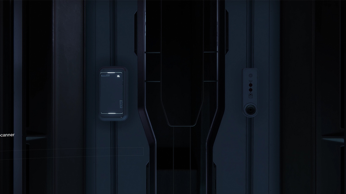 Once you finish the fight, head down through the door behind the arena. “Surrender” your weapons to be captured, then head back to Geosynchronous Orbit and make your way though the hallway. On your way, there will be a panel that allow you to gain access to the ship. Interact with this panel while the BrayTech Security Frames keep you safe.