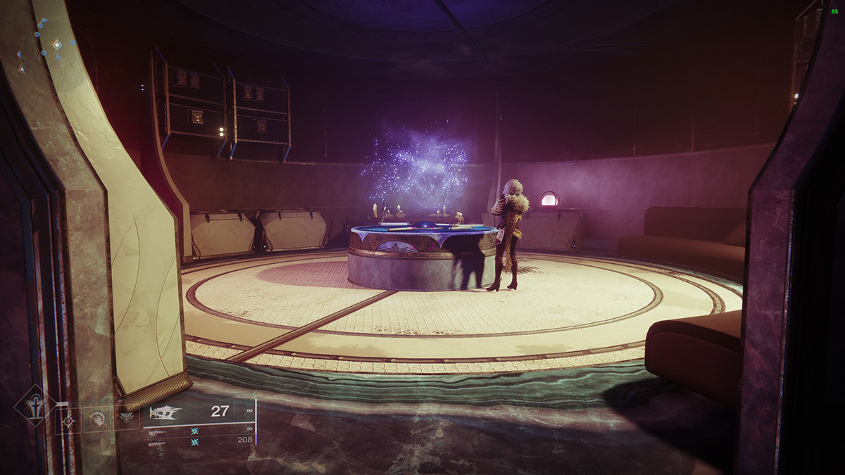 At this point, Petra will be ready to let you know what the Techeuns’ found, and speak with you. Head into the H.E.L.M. and down the stairway to the right. There, you will find the holoprojector, along with Petra’s message.