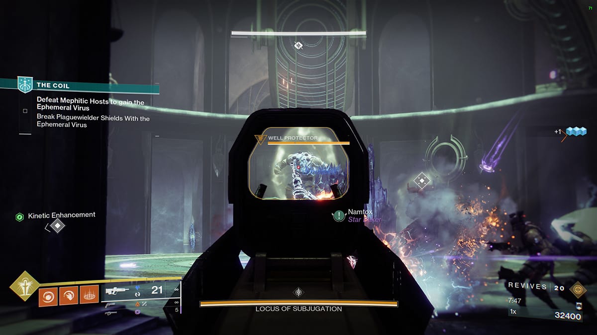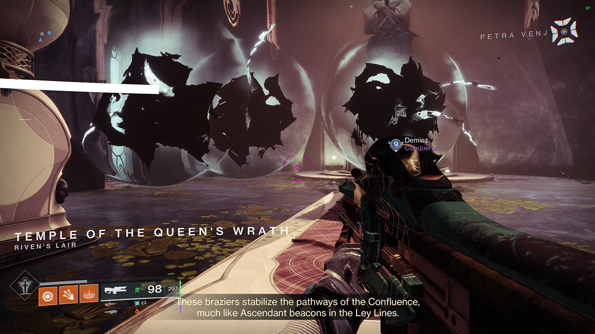Mara’s Techeuns continue to calculate the trajectory of Riven’s clutch as they move between realities. Buy them time by continuing to defend Riven’s Lair against incursions.