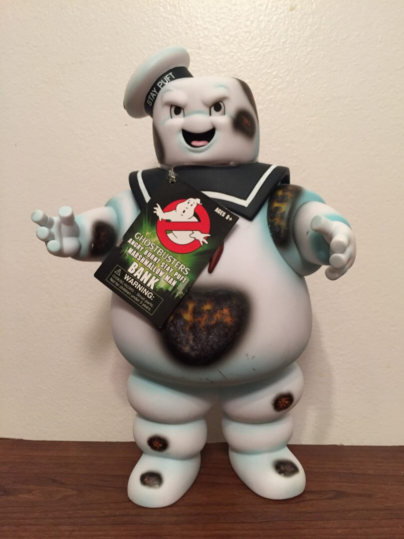 Hey, All you Ghostbusters Fans! Art Asylum, a Diamond Select partner, has created a really cool bank in the form of a “toasted” Stay Puft Marshmallow Man! This banks stands at approximately 11 inches tall and is made of a heavy plastic/rubbery material. If you are a Ghosbusters Fan, this is definitely a keeper! And it holds your change too!