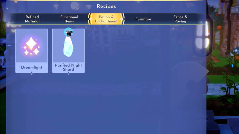 To get Purified Night Shards in Disney Dreamlight Valley, you will need to craft it. At the start of the game, Merlin will tell you about the history and purpose of this item and even share the crafting recipe: