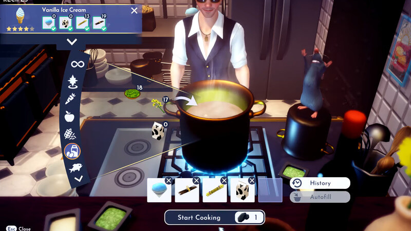 Once you’ve got all the ingredients, put these in the pot and click Start Cooking. Once you have your meal ready, you can eat it for 1,475 Energy, or you can sell Vanilla Ice Cream for 688 Star Coins. In addition, you can gift this dish to any character in Disney Dreamlight Valley to increase your friendship level.