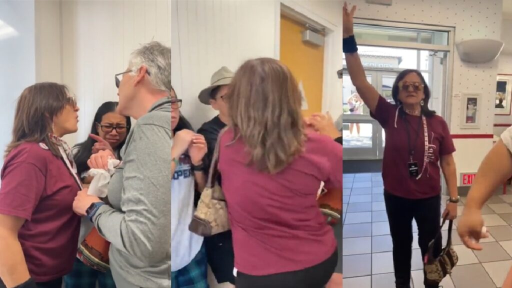 A frightening video has appeared on Facebook of a deeply disturbed Arizona Karen assaulting a lesbian couple at an In-N-Out Burger restaurant. The harasses the couple before physically attacking them when they refuse to separate. The karen has to be held back so that the extremely upset couple can leave.