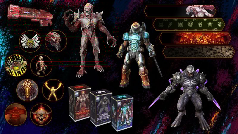 This minor update for DOOM Eternal includes new cosmetic content rewards* for the upcoming Battlemode 2.0 Season 4, Season 5, and Season 6. Each of these Battlemode 2.0 Seasons offers new Slayer and weapon skins and player badges + nameplates on the Slayer side. They also offer 2 new Demon skins and player badges + nameplates on the Demon side. Stay tuned to our official DOOM Twitter channel for when they go live! In the meantime, hereโs a preview of whatโs coming first in Battlemode 2.0 Season 4!