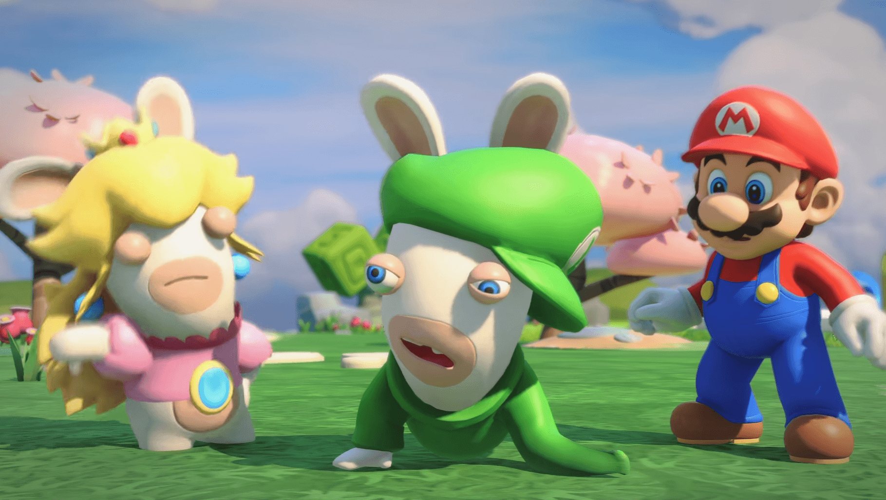 The story is that the Rabbids have invaded the Mushroom Kingdom, and Mario and his crew have to team up with a few of them in order to save the day. Princesses will most likely need to be rescued, mushrooms will need to be eaten, and coins will have to be collected.