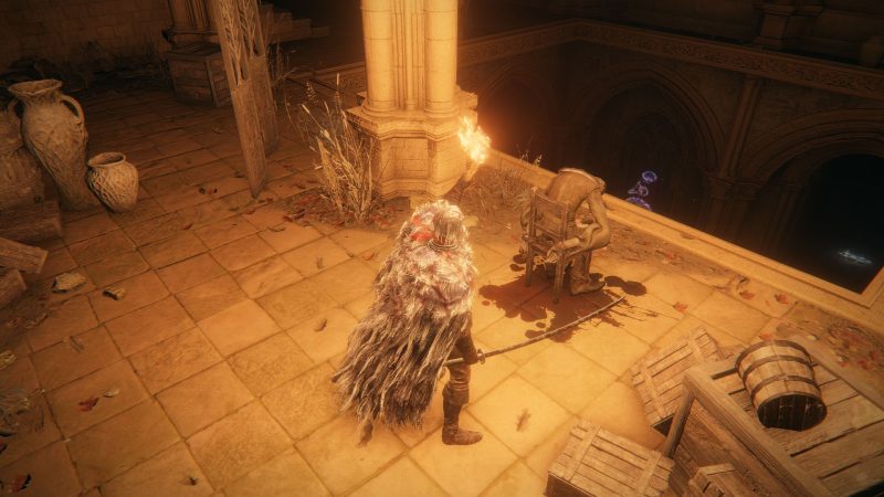 The second Leyndell location for the Seedbed Curse is on the opposite side of the Capital city, closer to the West Capital Rampart. Head south from the Site of Grace, out onto the walkway on top of the rampart. On the right-hand side, there will be a break in the wall that drops down to an area that looks to be full of ash and rubble. Walk off the edge to land on the roof of the shed below and make your way northwest to where a colossal tree root with be coming down from above. Use the roof to the right of that to hop up into the keep right in front of you. You should recognize the inside of the keep as the Roundtable Hold, only very empty and abandoned here. Stay to the right and follow the hallway to the end, where it will open up to a room with high ceilings and lots of books. There should be yet another corpse holding a Seedbed Curse in the back.