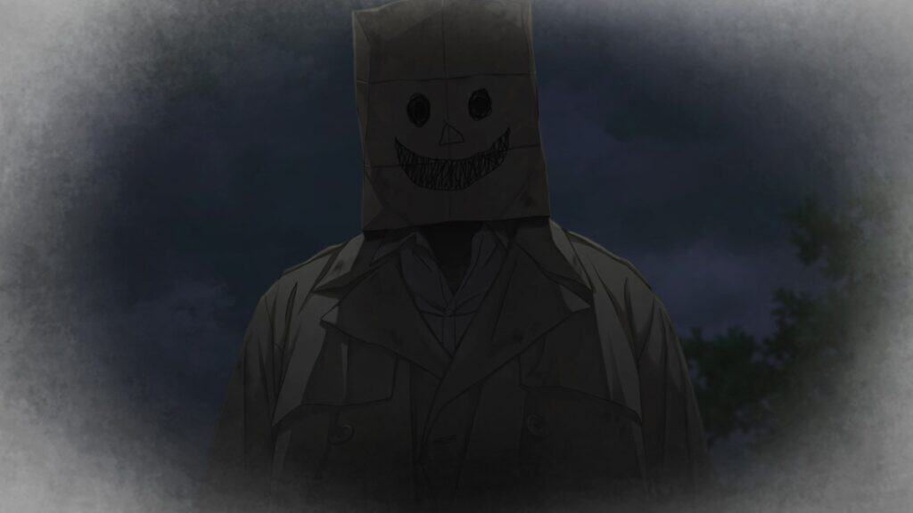 Emio – The Smiling Man begins with a call from the local police chief detective, Kamada, for Utsugi and his assistants to help solve a strange case. Utsugi and “The Protagonist” go to the crime scene to talk to Kamada and corroborate the victim’s peculiar state. Right here, the players will meet the police detectives assigned to this same case, Kuze and Kamihara. Finally, you see that the victim is a male teenager who has signs of having been choked in a remote area. The strangest fact is that someone covered the teenager’s head with a paper bag with a disturbing smiley face drawn on it.