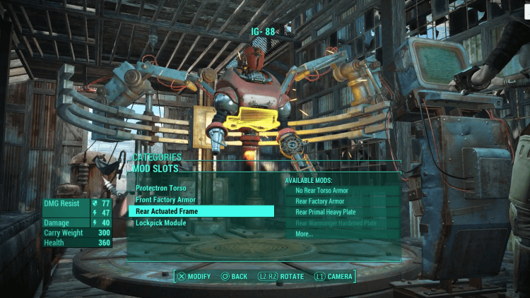 Modding weapons, armor, and other gadgets have become a staple component ofย Fallout 4, so the introduction of designing your very own robot seems like a no brainer. There are a wide variety of designs, weapons, armor, and attributes you can apply to your new mechanized buddy, allowing a deeper customization than any living companion offers. You can fine tune them to your place style in a way that compliments any style of play. Need a robot to act as a tank for you while you pick them off from afar? No problem. Having trouble with hacking computer terminals? Upgrade your bot with the ability to decrypt and watch the security doors buckle to your robotic might. Though it doesn’t just extend to creations you start from scratch as robots like Codsworth and Curie can also be fully redesigned and upgraded. However, unless you have invested heavily into the crafting perks you will be quite limited as to what you can build. Which could make or break the experience and enjoyment you get out of the robot building. Despite that, I spent more time than I’d care to admit fine tuning my personal death machine to the best of my abilities.