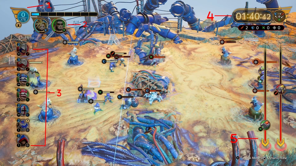 • Each match starts with four points in your ATB gauge. We recommend starting with an elite unit followed by a cleric. This will allow you to push the line without worrying about enemies.