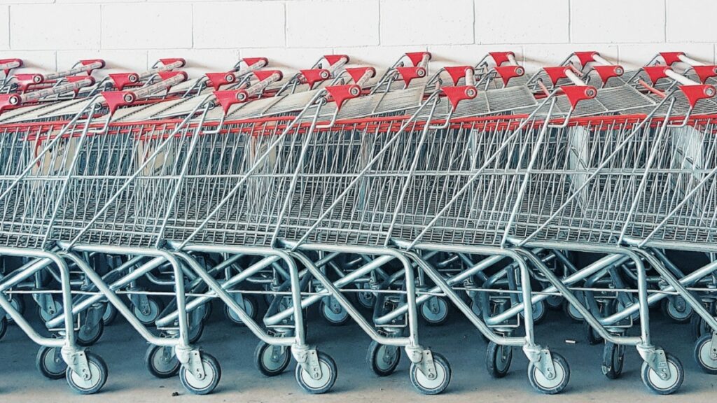 “They weren’t shopping carts, they were the big ‘u-boats’ that are used to put groceries out on the floor. They are similar to the luggage cart at a hotel, just a low platform a few inches off the ground with metal rails on either end. Anyway much easier to transport than 15 or 20 actual shopping carts,” a third person explained.