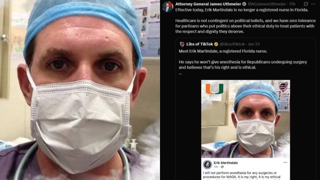 Reportedly, Martindale claimed he had been hacked, but that wouldn’t stop the backlash. Days after the controversial post, Attorney General James Uthmeier announced that Martindale is no longer a registered nurse in Florida.