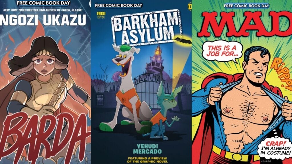 DC is also giving out three other free issues this year. First up is Barkham Asylum. This FCBD edition follows the henchpets to some of DC’s biggest villains as they try to stop Dr. Hugo Mange in the walls of the maximum-security pound. The issue also previews the upcoming graphic novel of the same name. Next up is the BARDA FCBD issue. This follows Granny Goodness’s right-hand warrior Barda as she navigates self-discovery, deep friendships, and even first love. Finally, a special FCBD edition of MAD Magazine will playfully mock the heroes of DC.